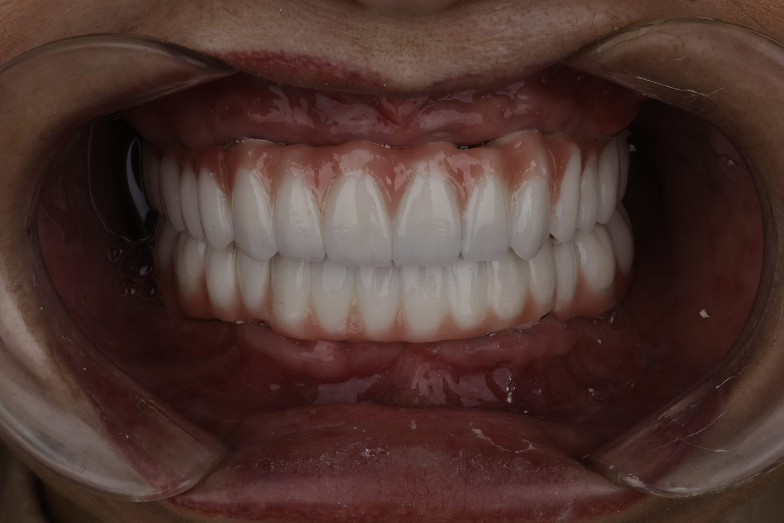 بازسازی کامل با ایمپلنت تیتانیوم، جراحی هدایتشده و پروتز ثابت؛ نتیجهای پایدار.